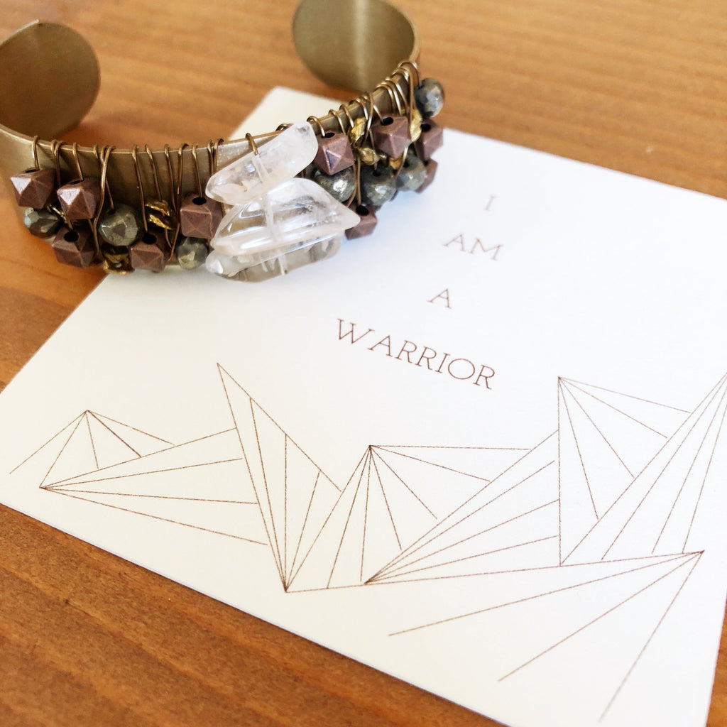 Each piece of Champagne on a Wednesday jewelry is accompanied by a 3.5 x 3.5 artwork card. The front of this card will feature original artwork specific to the theme of the collection. The back of each card will contain the full story of the collection or the individual piece. Save these cards and remember their words each time you wear your jewelry, for a dose of inspiration and motivation.