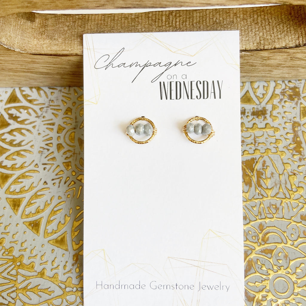 Neutral gemstone Open Circle Stud Earrings in Gold or Silver