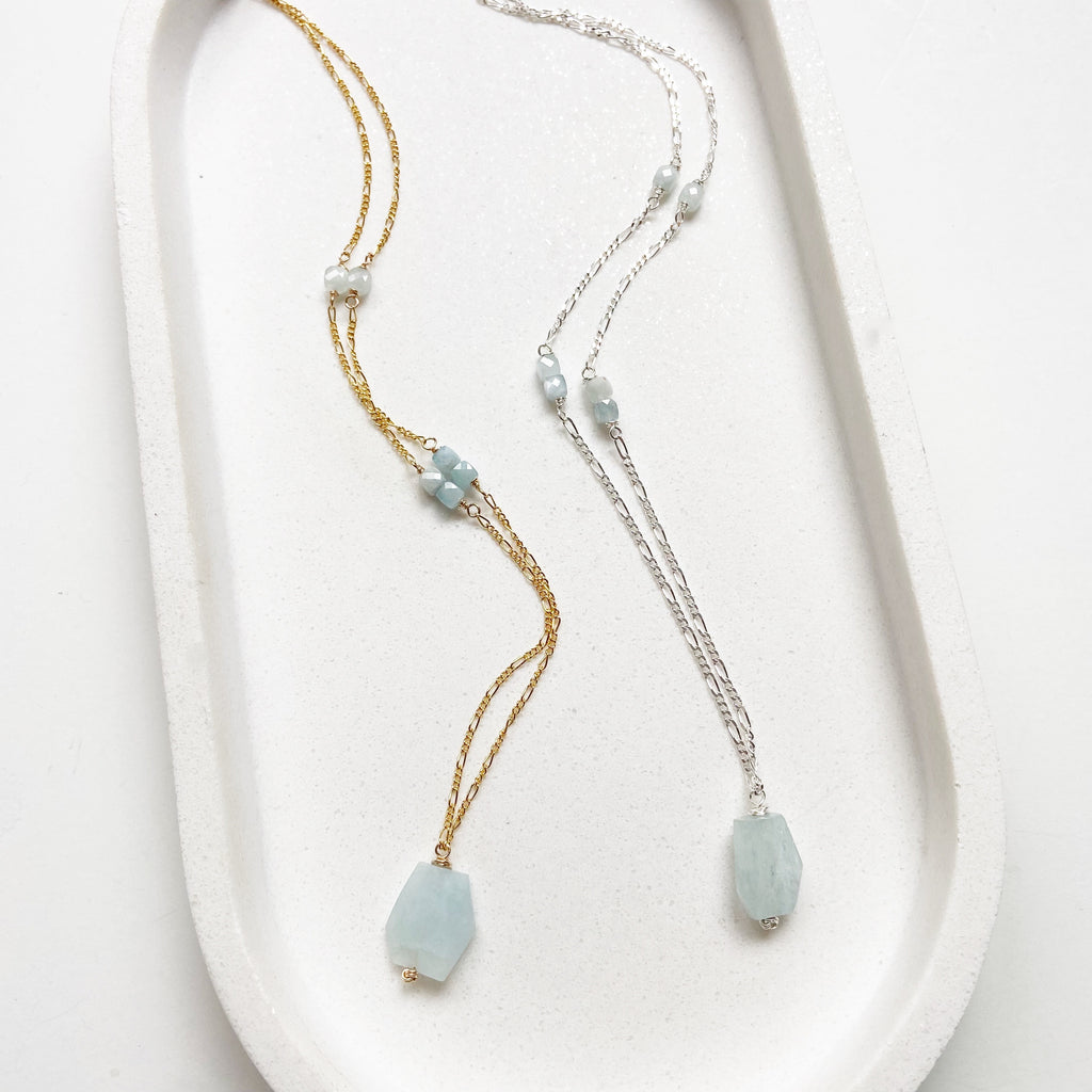 Aquamarine Floating Gemstone Necklace in Gold or Silver (21 inches)