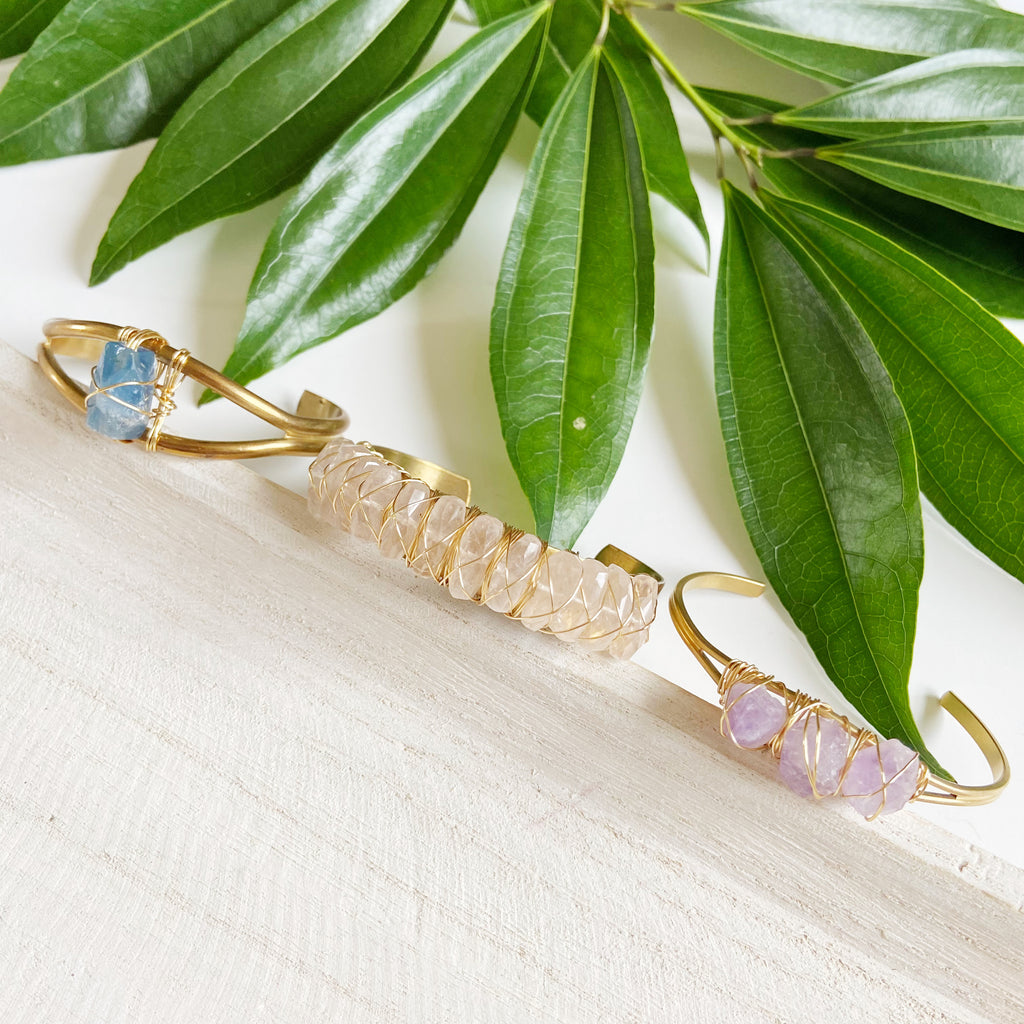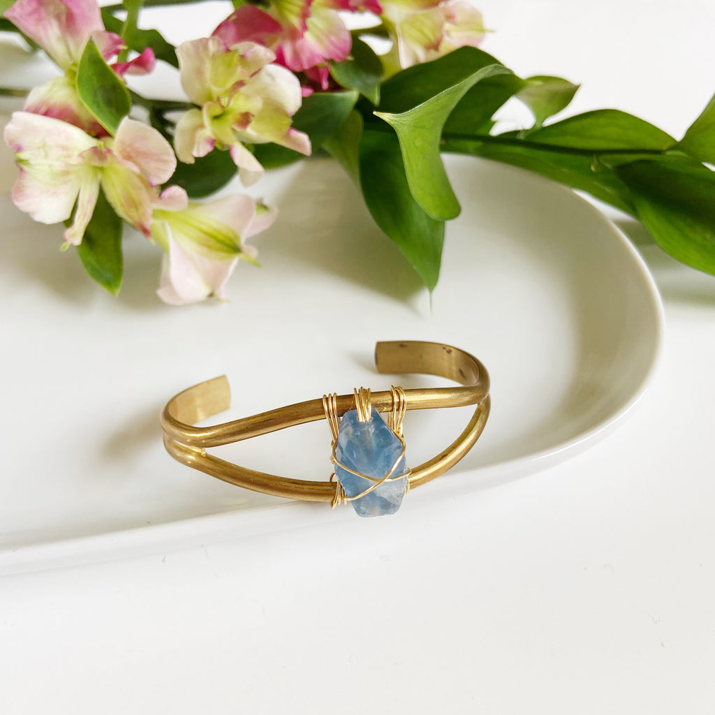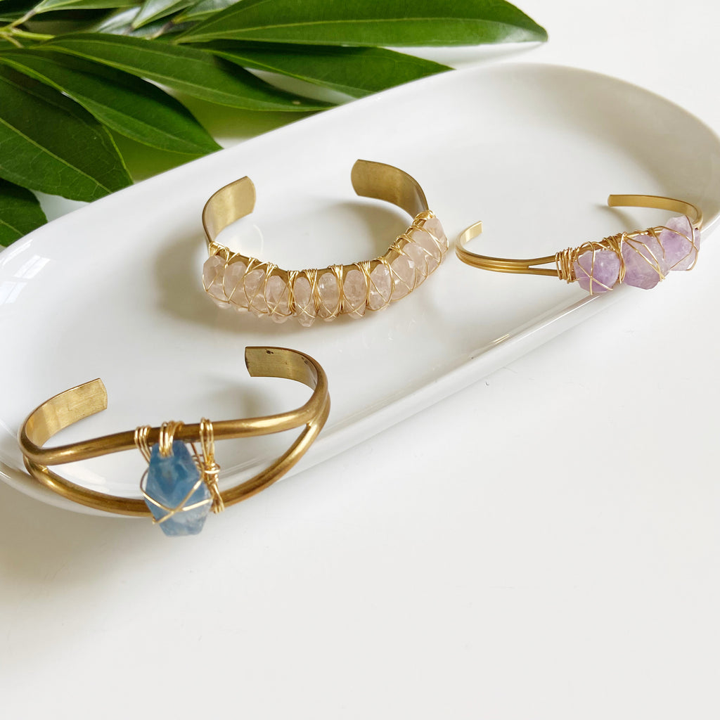 Make a statement with these raw gemstone adjustable brass cuff bracelets. Choose your stone and style, or get one of each!