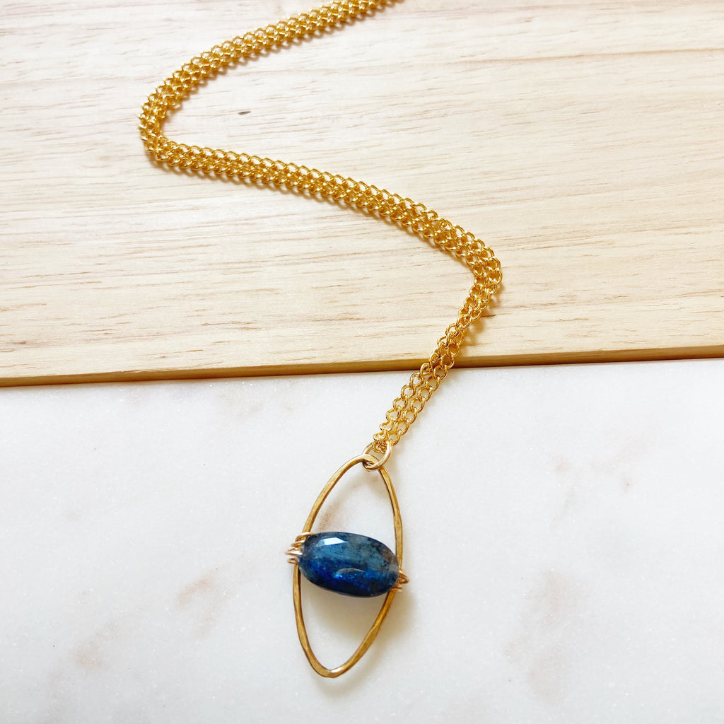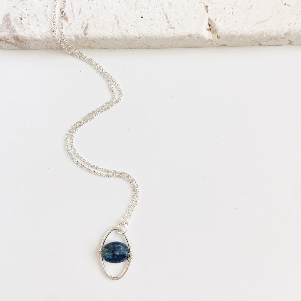 Smooth Kyanite Evil Eye Pendant Necklace (22 inches)