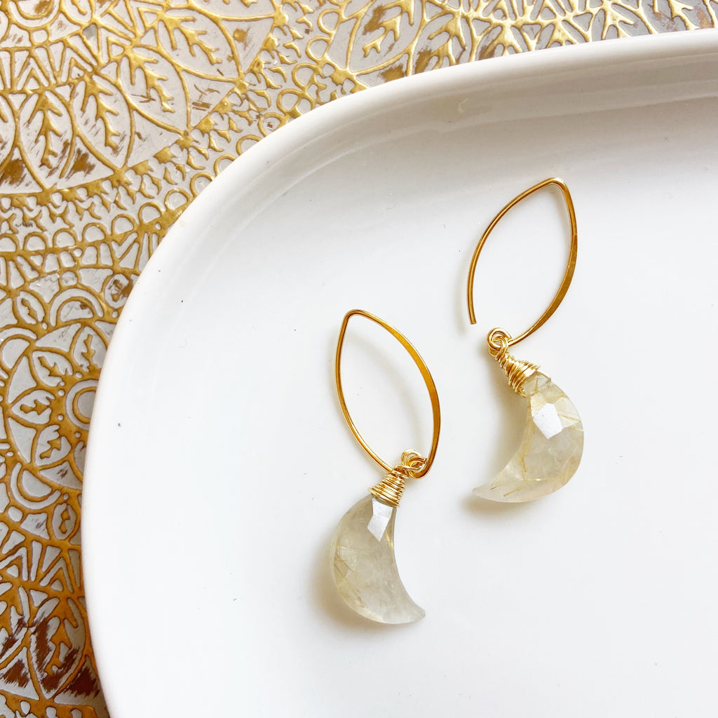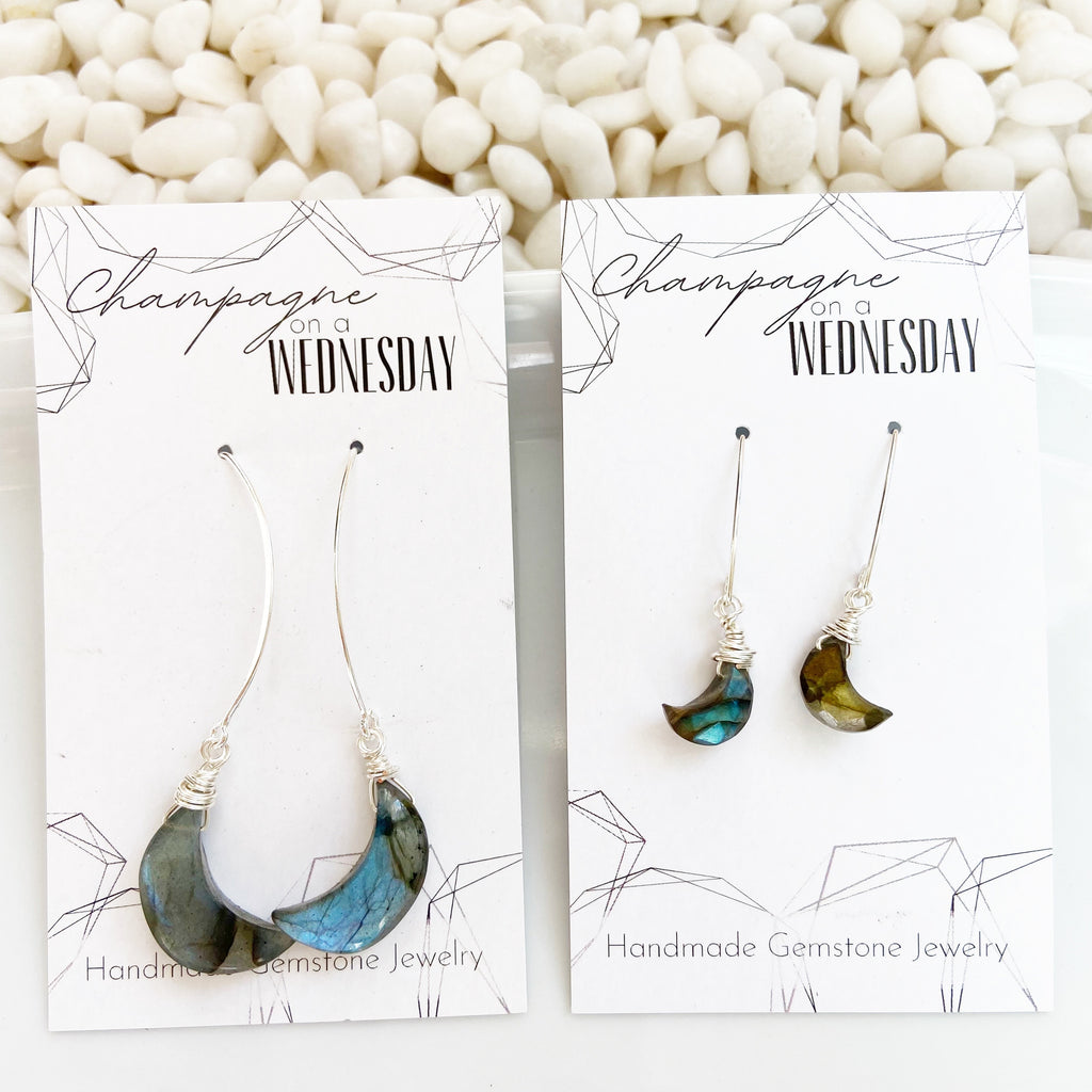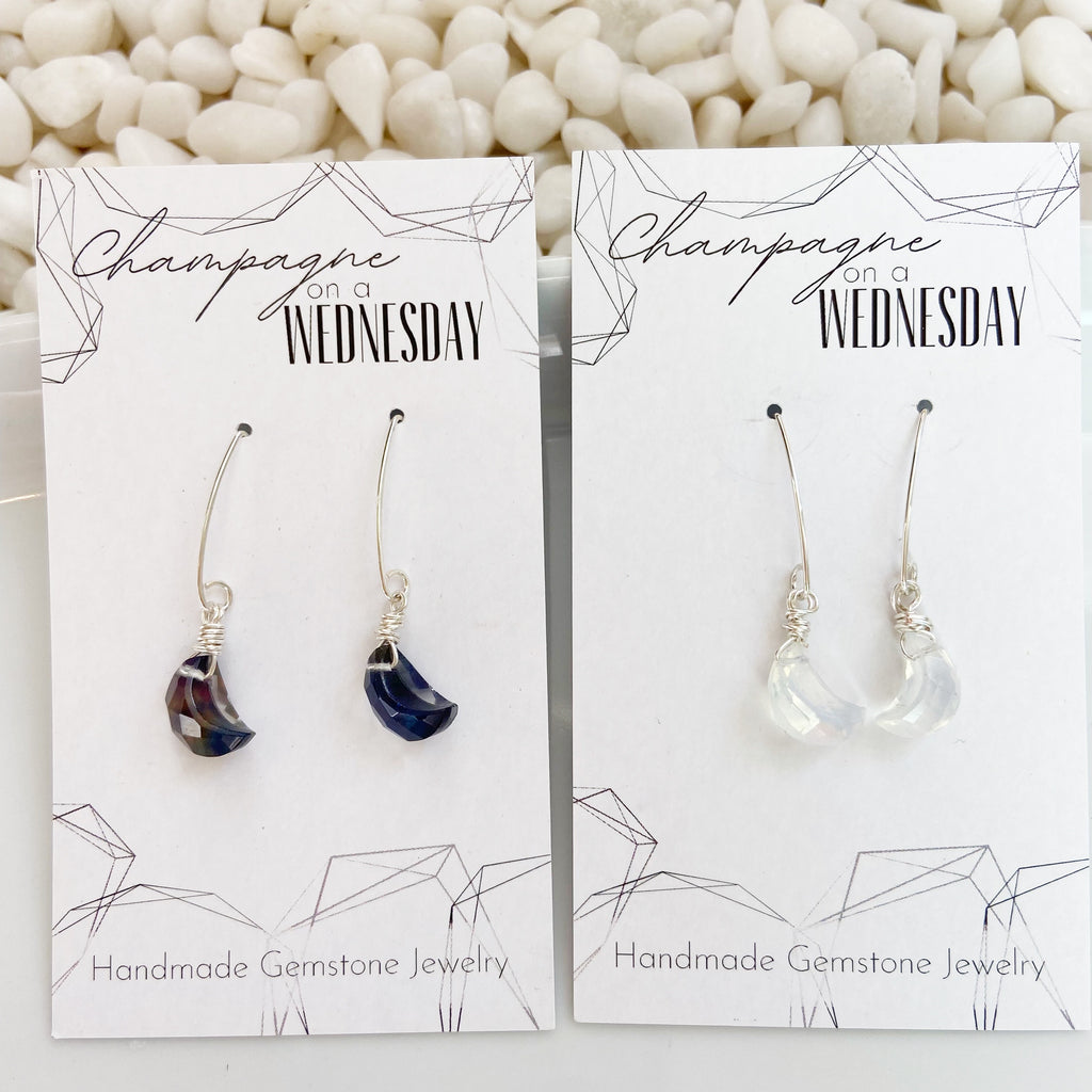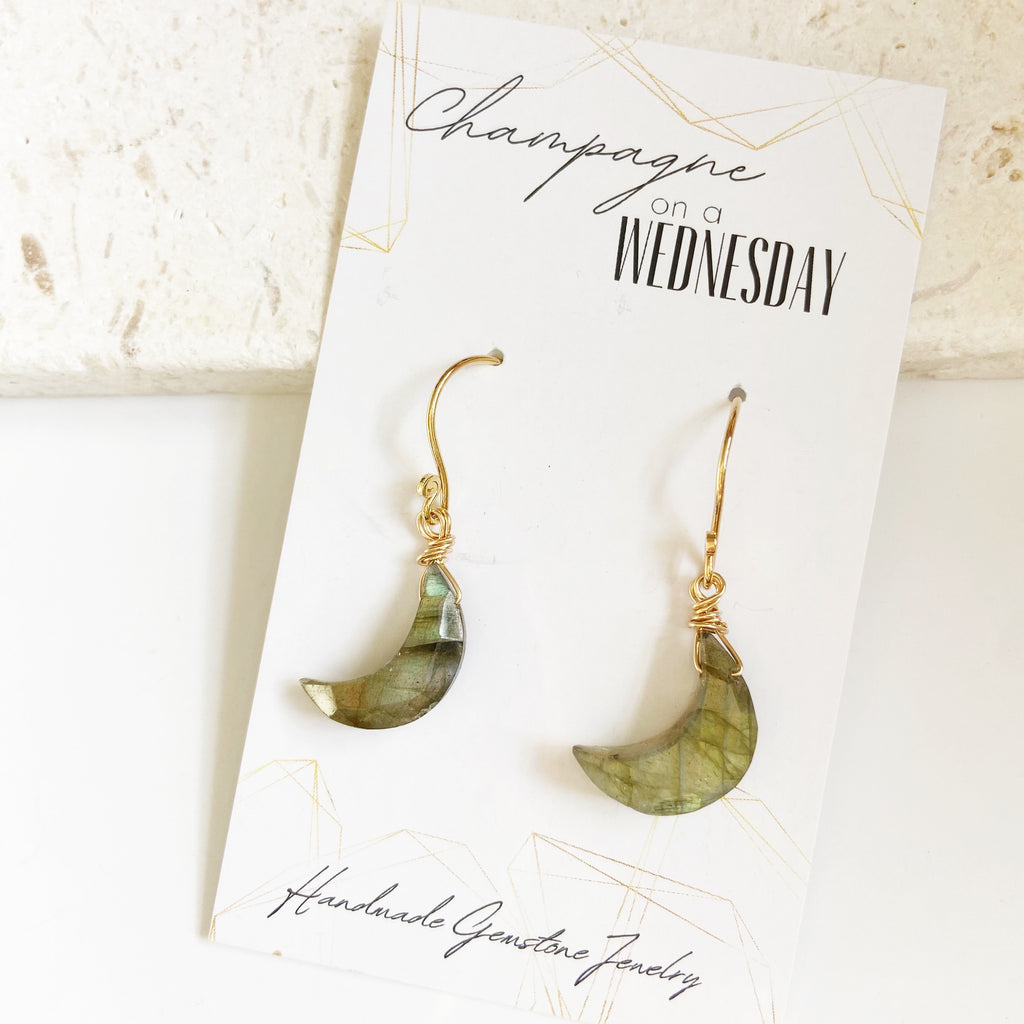 Moon Shaped Moonstone or Labradorite Gemstone Earring in Gold or Silver