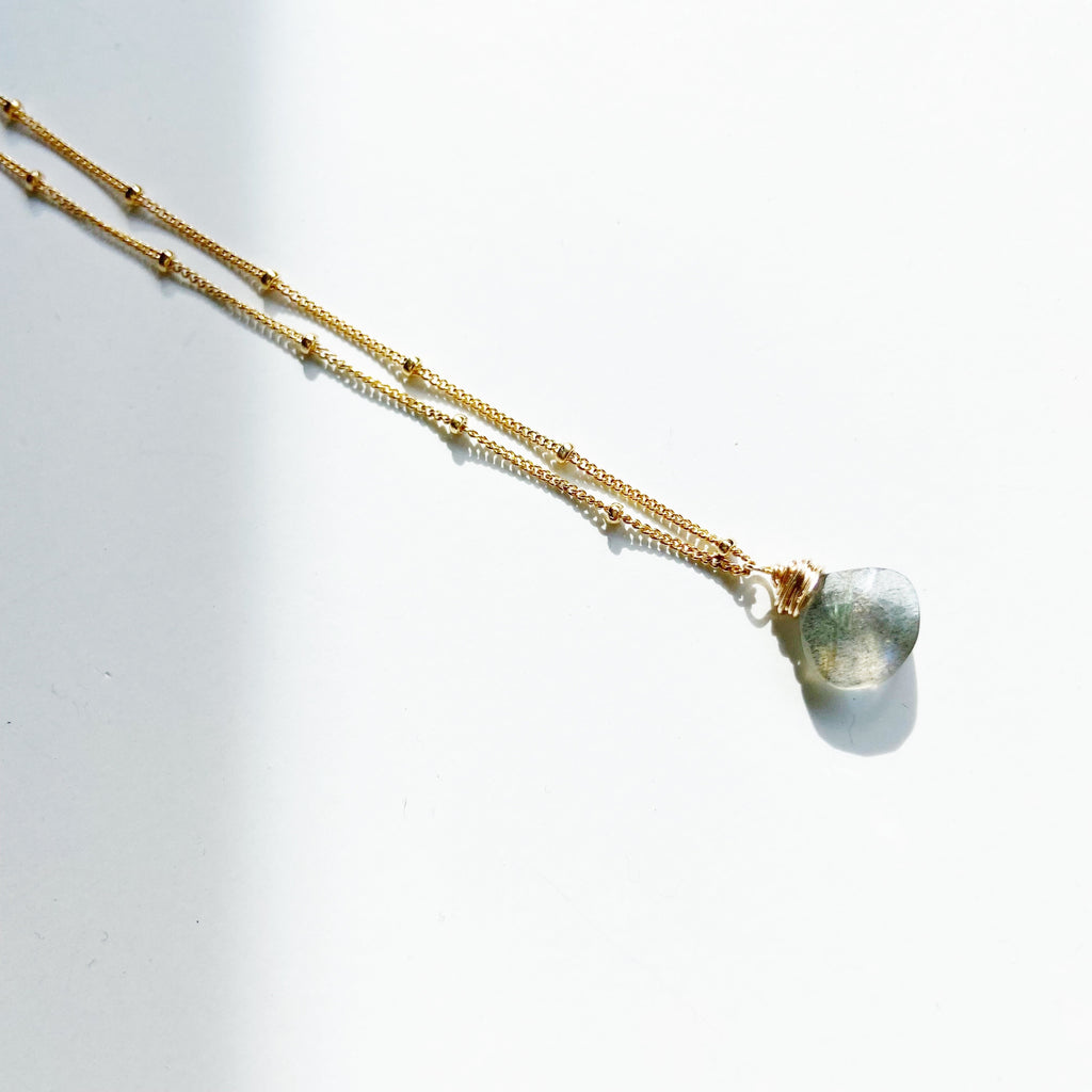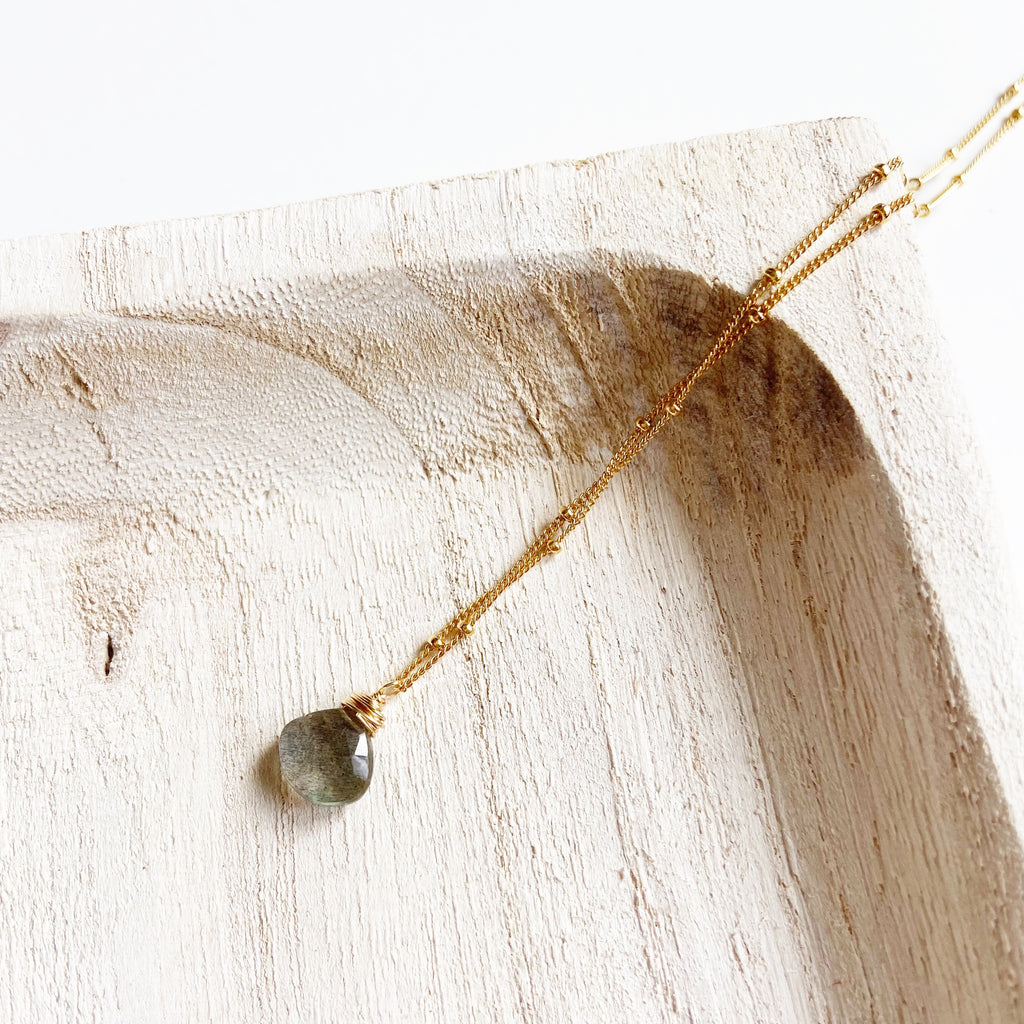 Choose gold filled or silver filled chain, and blue or green labradorite. Wear this necklace alone or layer with your other favorite necklaces.