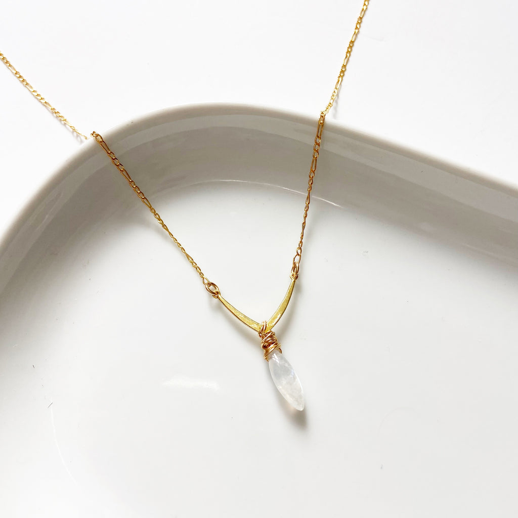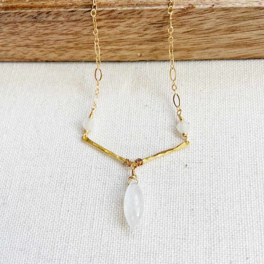 Chevron Moonstone Mid Length Necklace in Gold or Silver (20 inches)
