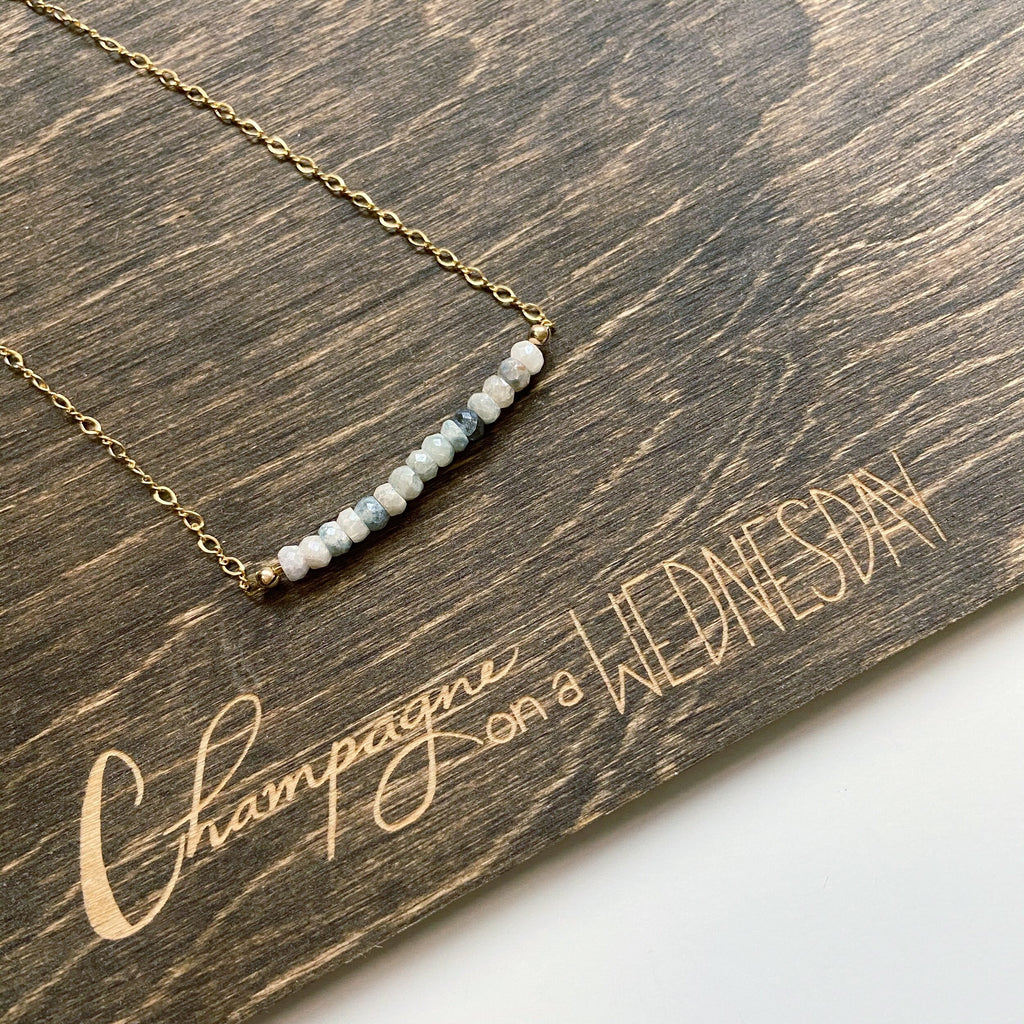 Each piece of Champagne on a Wednesday jewelry is accompanied by a 3.5 x 3.5 artwork card. The front of this card will feature original artwork specific to the theme of the collection. The back of each card will contain the full story of the collection or the individual piece. Save these cards and remember their words each time you wear your jewelry, for a dose of inspiration and motivation.