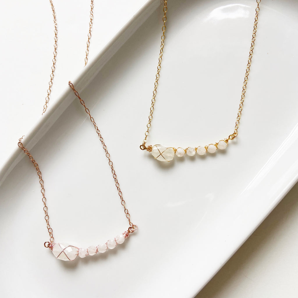 Embellished Crescent Moonstone Mid Length Necklace in Gold or Rose Gold (17.5 inches)