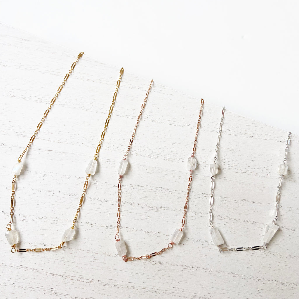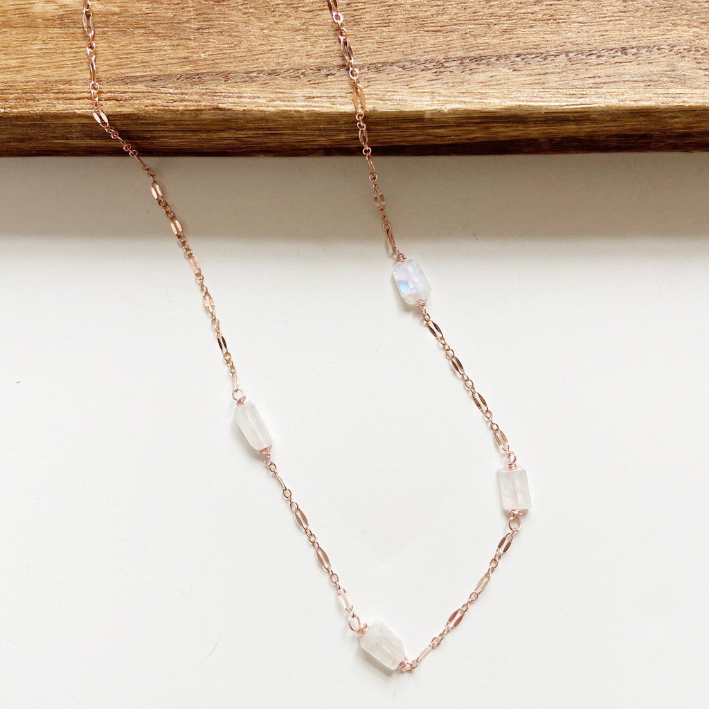 Moonstone Segmented Necklace in Gold, Silver, or Rose Gold (17 inches)