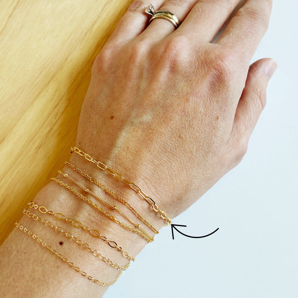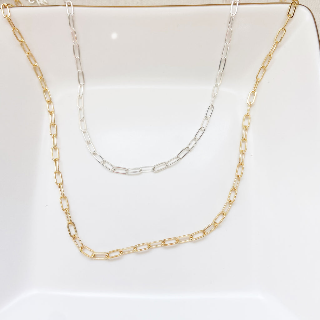 This trendy "paperclip" chain is perfect for layering, or to wear alone as a simple, elegant, everyday accessory. It is the chunkiest of our chain options, and is a great durable option for any personal style.