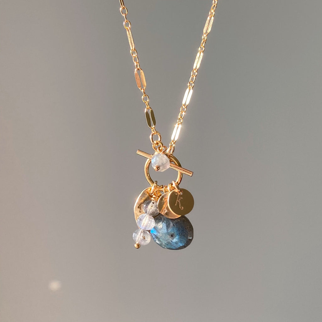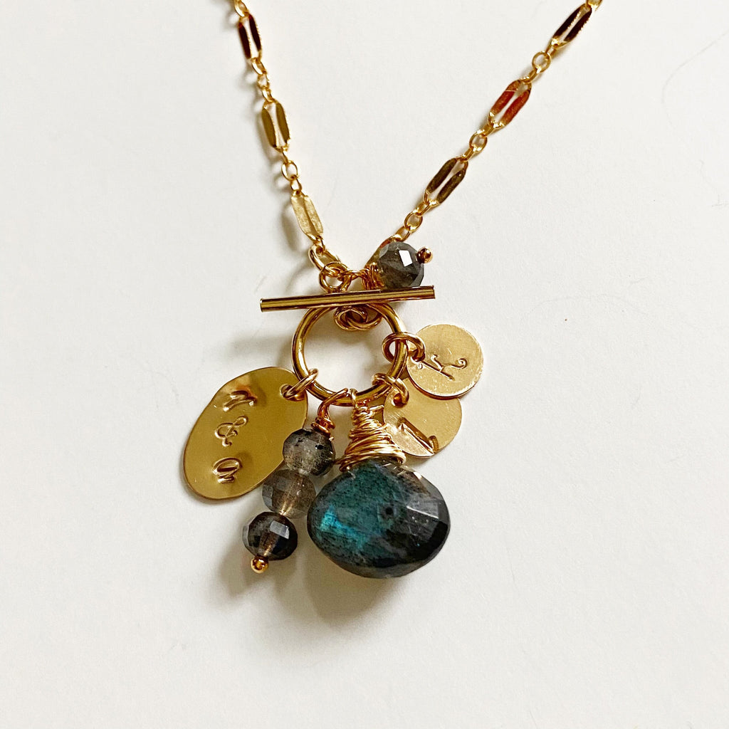 Eliza- Personalizable Labradorite Luxe Charm Necklace in Gold or Silver