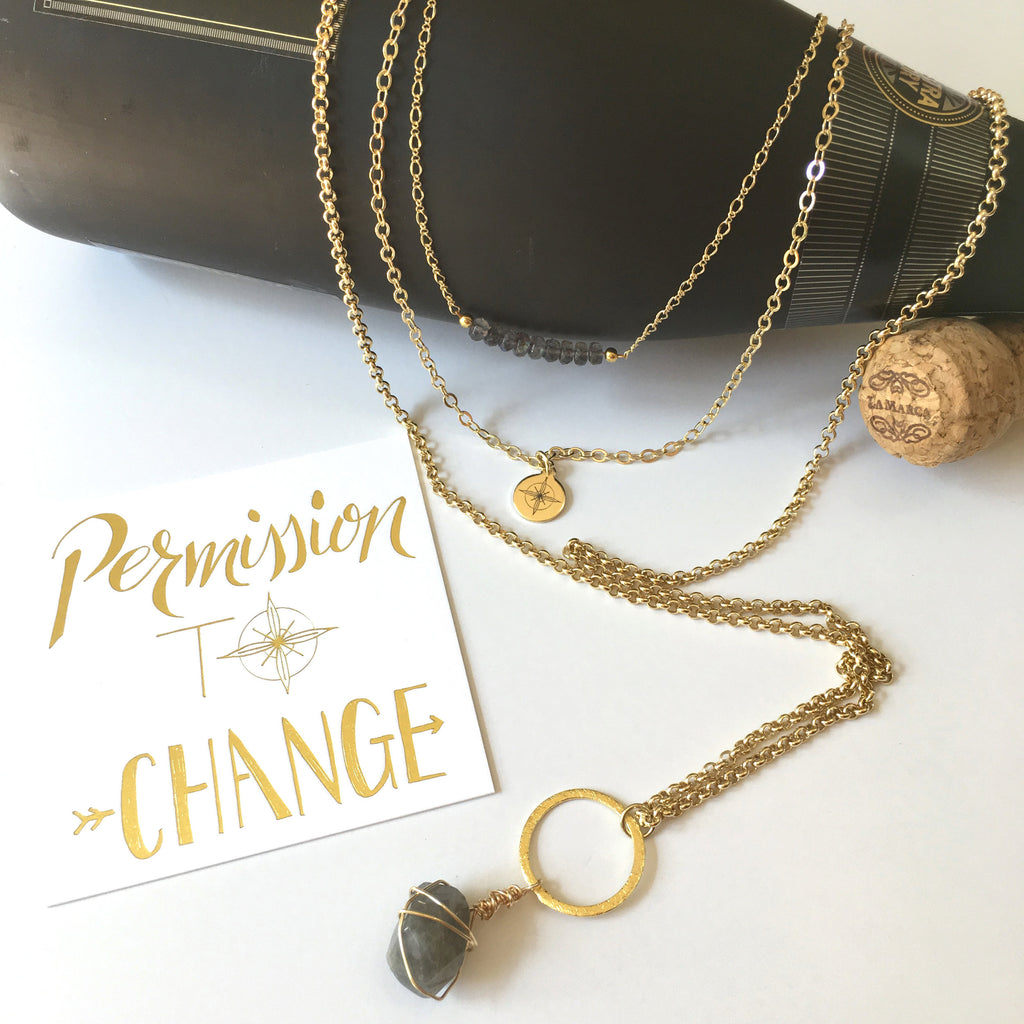This listing is for the original iteration of our flagship piece- Permission to Change. This three-piece, interchangeable necklace will be your reminder that you are in charge of your life. You have all the power to make a change, and this is your permission.