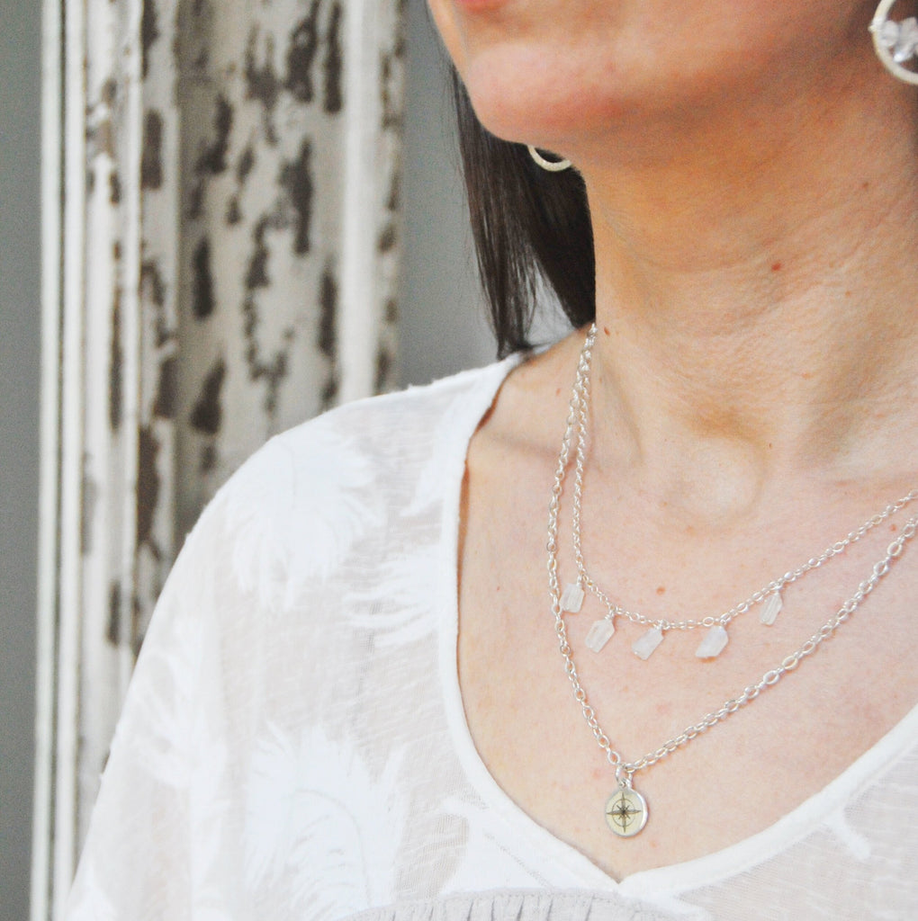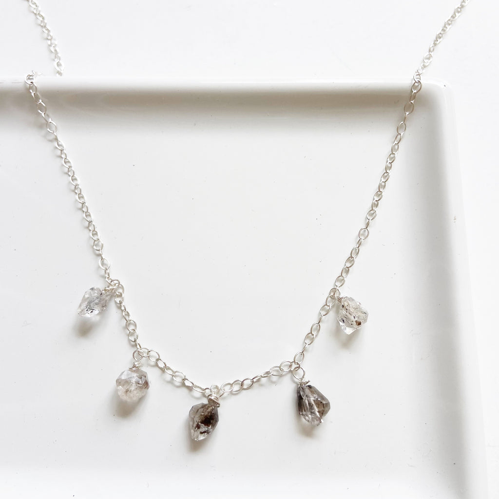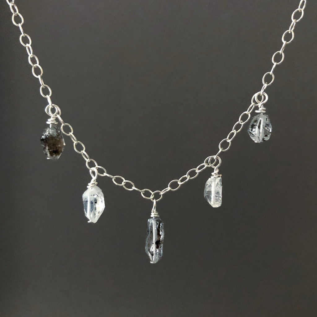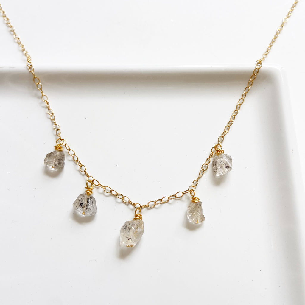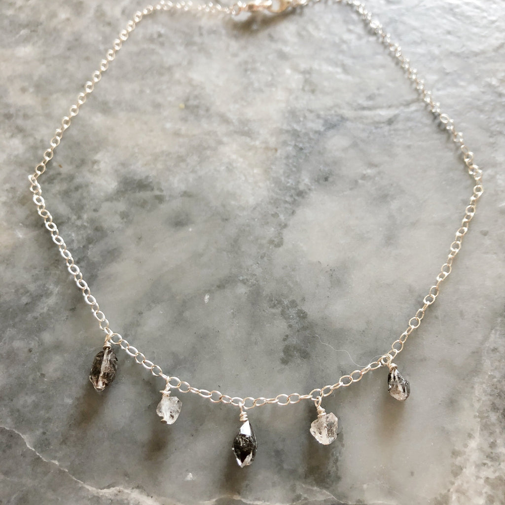 Choose a necklace with moonstone or herkimer diamond quartz dangles, or purchase both and wear them together using the necklace extender to increase the length of one.