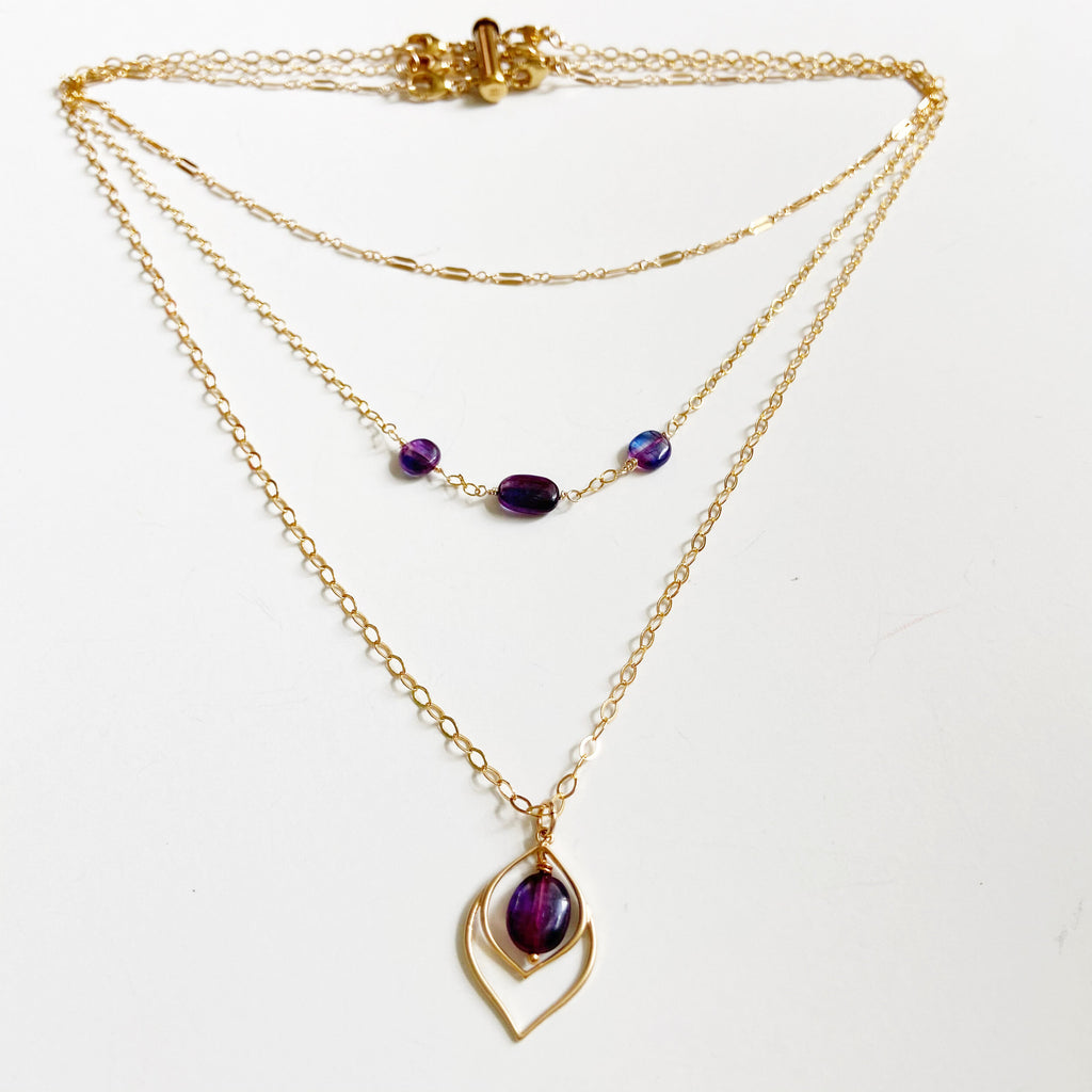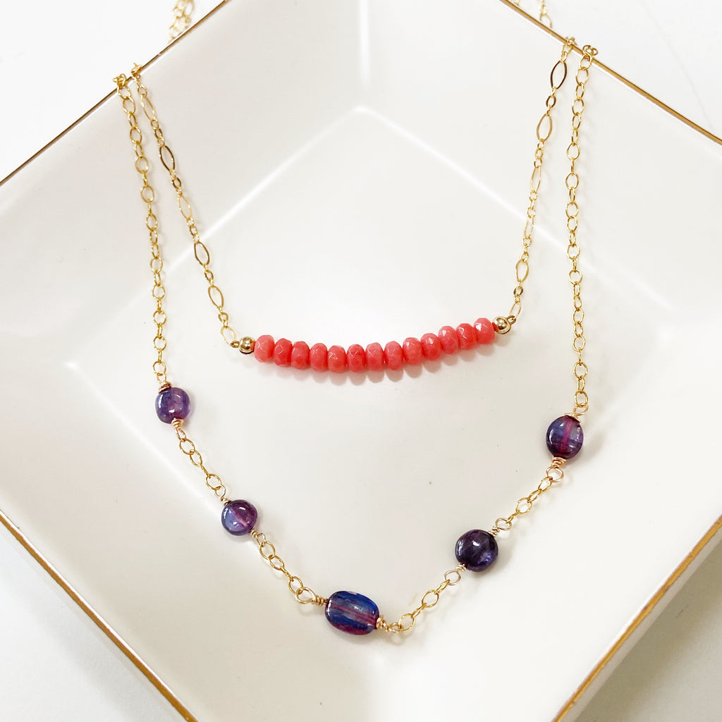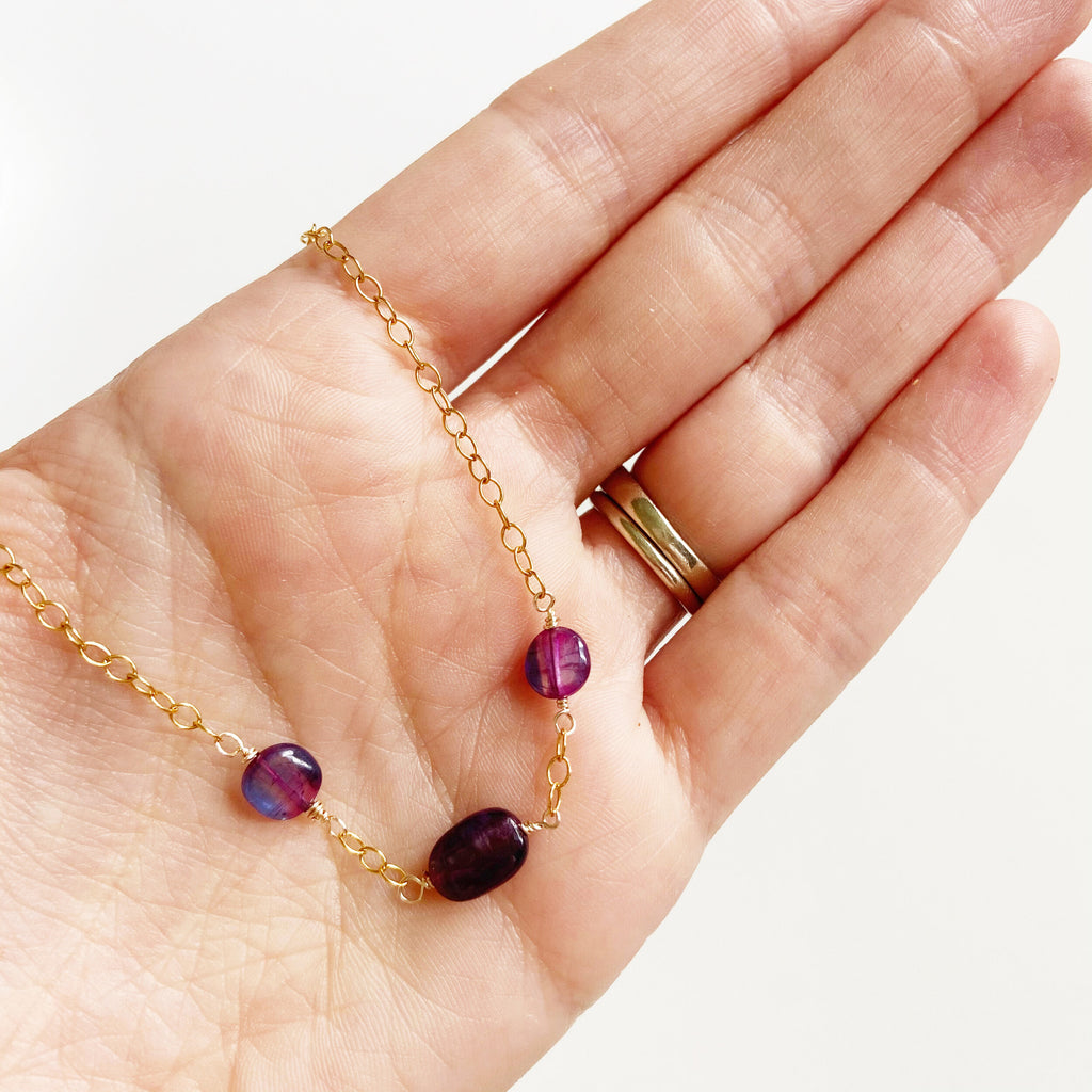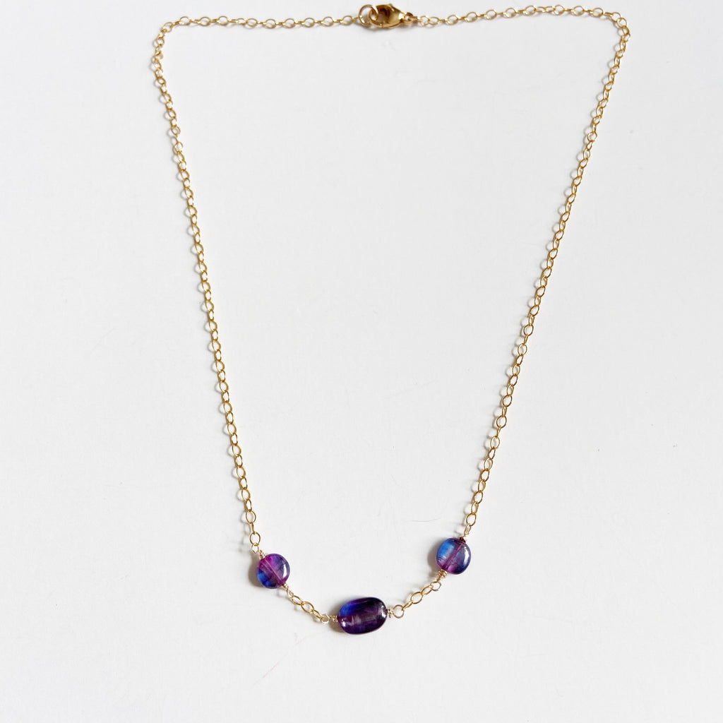 Dark Purple Mystic Kyanite Segmented Short Necklace in Gold or Silver (17 inches)